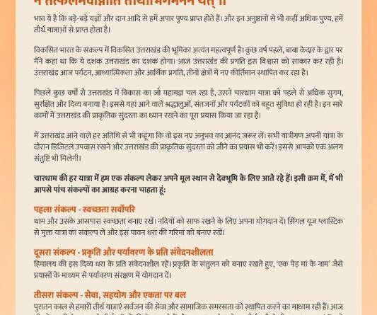 *डिजिटल उपवास पर रहते हुए, उत्तराखंड की प्राकृतिक सुंदरता का आनंद लें तीर्थयात्री* *प्रधानमंत्री ने उत्तराखंड आने वाले तीर्थयात्रियों से
