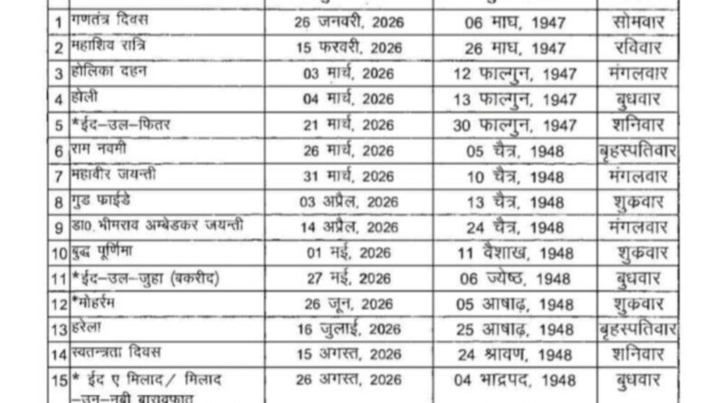 Read Moreदेहरादून। उत्तराखंड में वर्ष 2026 (शक संवत 1947–48) के लिए सार्वजनिक एवं ऐच्छिक अवकाशों की आधिकारिक घोषणा कर दी गई