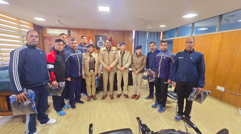 टीम के सभी सदस्यों को ट्रैक सूट देते हुए वरिष्ठ पुलिस अधीक्षक देहरादून द्वारा पूरी टीम का मनोबल बढ़ाया तथा टीम के सभी सदस्यों को लगातार इसी प्रकार कडी मेहनत करते हुए भविष्य में भी अपने स्वर्णिम प्रदर्शन को जारी रखने के लिए प्रोत्साहित किया गया।