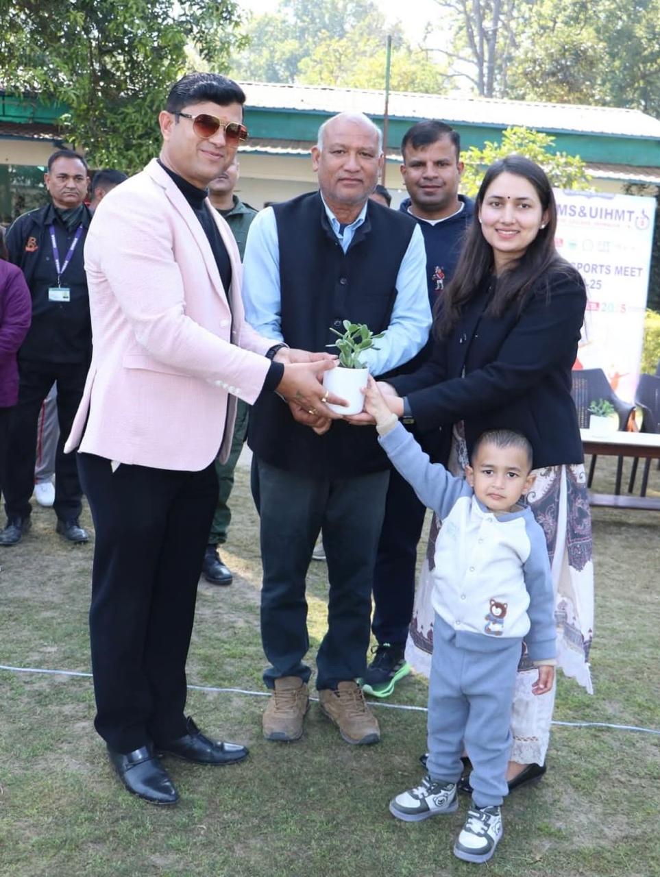 आज कार्यक्रम के शुभारंभ के अवसर पर क्षेत्रीय पार्षद देवी दयाल ओडवाल व कुंआवाला के पूर्व ग्राम प्रधान प्रमोद यादव मुख्य अतिथि के रूप में उपस्थित रहे। कार्यक्रम की अध्यक्षता करते हुए कॉलेज के चेयरमैन एडवोकेट ललित मोहन जोशी ने कार्यक्रम में सभी अतिथियों का स्वागत किया और छात्र-छात्राओं को करते हुए कहा कि आज हम यहां स्पोर्ट्स फेस्टिवल के शुभारंभ के लिए एकत्र हुए हैं। यह दिन केवल खेलों का नहीं, बल्कि जोश, मेहनत, टीम वर्क और खेल भावना का प्रतीक है। यह वह मंच है जहाँ आप अपने हुनर को निखार सकते हैं, अपनी क्षमताओं को परख सकते हैं और अपने भीतर छिपे हुए एथलीट को पहचान सकते हैं तथा समाज से नशाखोरी को नष्ट करने के लिए युवाओं को खेलों की और प्रेरित करना होगा। खेल की भावना युवाओं को सकारात्मक ऊर्जा प्रदान करती है और नशे रूपी बुराई से लड़ने की शक्ति प्रदान करती हैं।