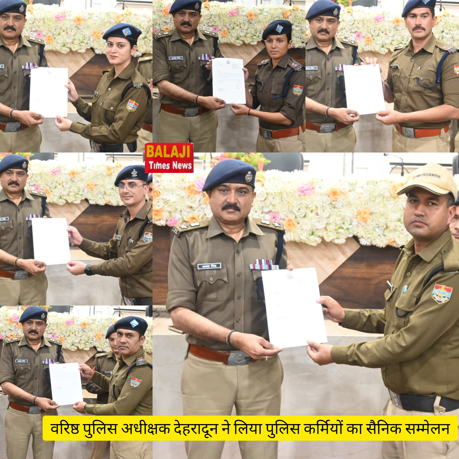 देहरादून। आज दिनांक 12-03-2025 को वरिष्ठ पुलिस अधीक्षक देहरादून द्वारा पुलिस लाइन देहरादून में पुलिस कर्मियों का सैनिक सम्मेलन लिया गया, सम्मेलन के दौरान एसएसपी देहरादून द्वारा उपस्थित पुलिस कर्मियों से उनकी समस्याओं की जानकारी लेते हुए उपस्थित अधिकारियों को उनके त्वरित निस्तारण के निर्देश दिये गये। गोष्ठी के दौरान एसएसपी देहरादून द्वारा माह जनवरी/फरवरी 2025 में उत्कृष्ठ कार्य करने वाले 71 पुलिस अधि0/कर्म0 को प्रशस्ति पत्र देकर सम्मानित किया गया, साथ ही भविष्य में भी इसी प्रकार अपने कर्त्तव्यों का निर्वहन करने के लिये प्रेरित किया।