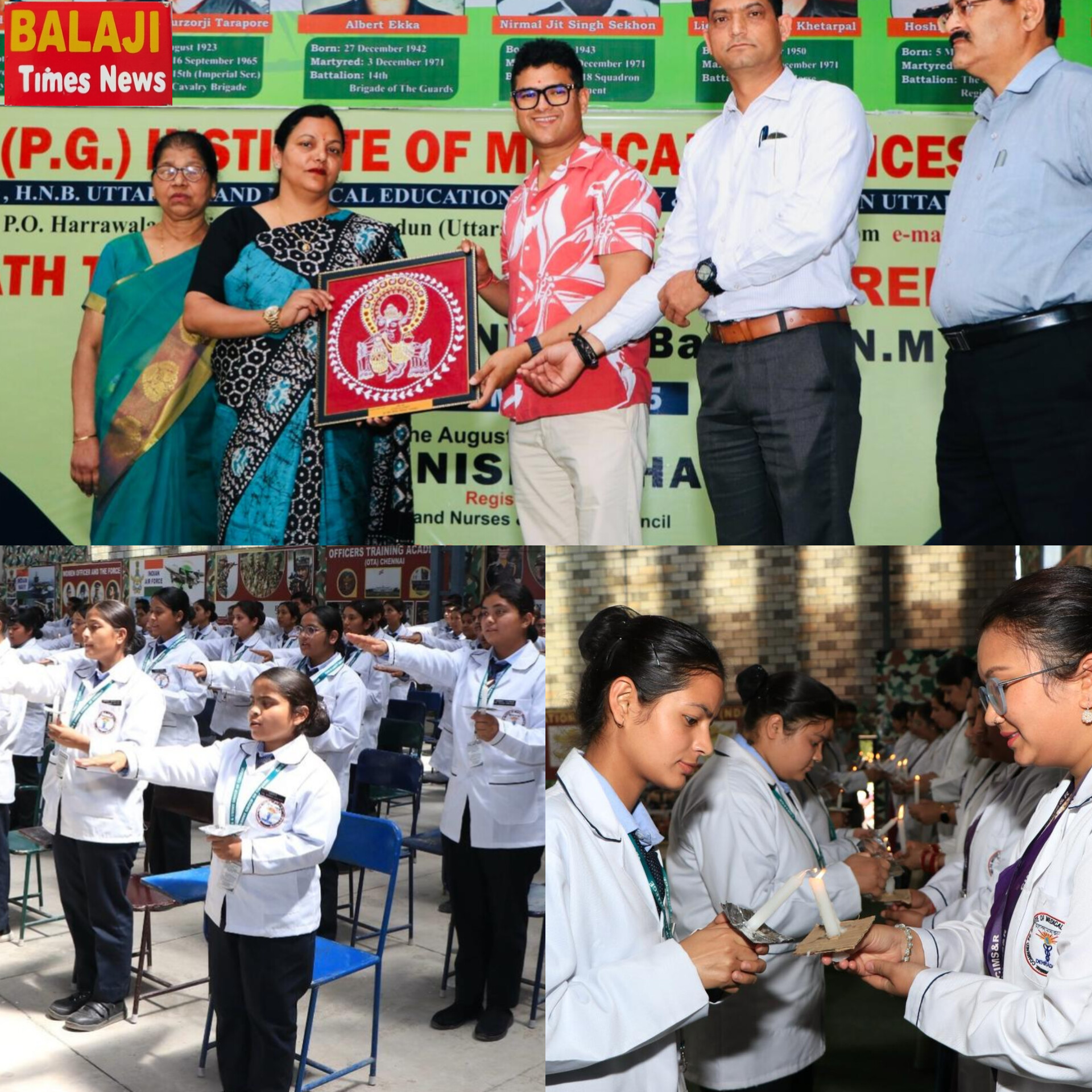 बालाजी टाइम्स न्यूज देहरादून। सीआईएमएस एंड यूआईएचएमटी ग्रुप ऑफ कॉलेज देहरादून में शनिवार को सीआईएमएस कॉलेज ऑफ नर्सिंग की ओर से एमएससी नर्सिंग, पोस्ट बीएससी नर्सिंग, बी.एस. सी. नर्सिंग एवं ए.एन.एम. 2024 के छात्र-छात्राओं हेतु लैंप लाइटिंग और शपथ ग्रहण कार्यक्रम का आयोजन किया गया। यह एक पारंपरिक और सम्मानजनक कार्यक्रम है जिसमें नर्सिंग के छात्रों को उनके पेशेवर जीवन की शुरुआत करते हुए एक शपथ दिलाई जाती है। यह समारोह विद्यार्थियों के लिए गर्व और जिम्मेदारी का प्रतीक होता है। कार्यक्रम में उत्तराखण्ड नर्सेज एंड मिडवाइव्ज काउंसिल की रजिस्ट्रार डॉ. मनीषा ध्यानी मुख्य अतिथि एवं कैलाश अस्पताल देहरादून की नर्सिंग सुपरिंटेंडेंट सुषमा विशिष्ट अतिथि के रूप में उपस्थित रही।