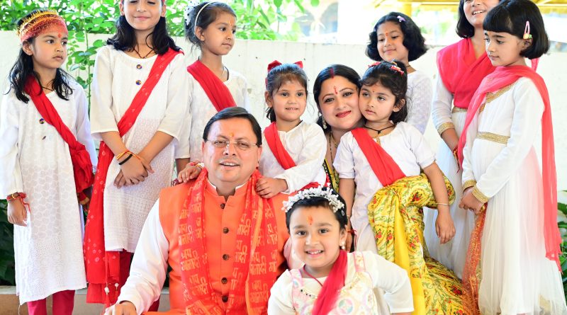 सीएम धामी ने सपरिवार दुर्गा नवमी कन्या पूजन किया