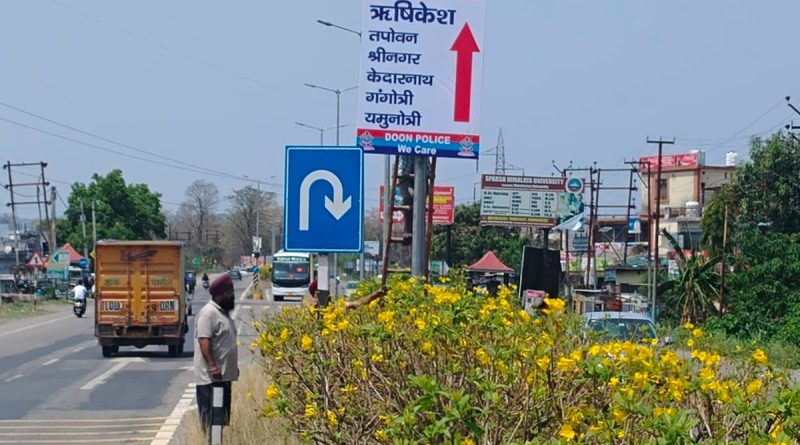 देहरादून। आगामी चार धाम यात्रा/पर्यटक सीजन के दृष्टिगत बाहरी राज्यों से आने वाले श्रद्धालुओं/पर्यटकों की सुविधा तथा चार धाम मार्गो की जानकारी प्रदान करने हेतु वरिष्ठ पुलिस अधीक्षक देहरादून द्वारा चार धाम यात्रा रूट पर सूचना संबंधित फ्लेक्स बोर्ड लगाने हेतु संबंधित थाना प्रभारियों को निर्देशित किया गया है। उक्त निर्देशो के क्रम में पुलिस द्वारा डोईवाला तथा ऋषिकेश क्षेत्रान्तर्गत मुख्य स्थानों पर मार्गों के विवरण/भू स्खलन क्षेत्र/मार्गों के पूर्ण विवरण से संबंधित साइन बोर्ड लगाये गये।