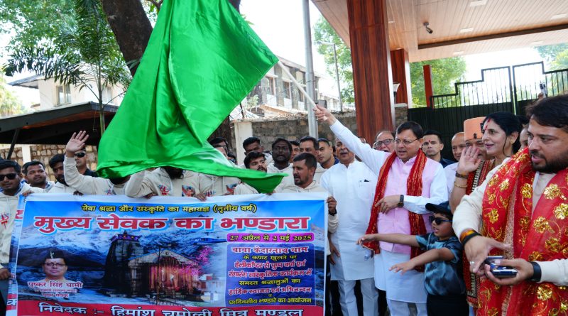 सीएम धामी ने चारों धामों में “मुख्य सेवक भंडारा” के लिए जाने वाले सेवादारों की टीम को हरी झंडी दिखाकर रवाना किया