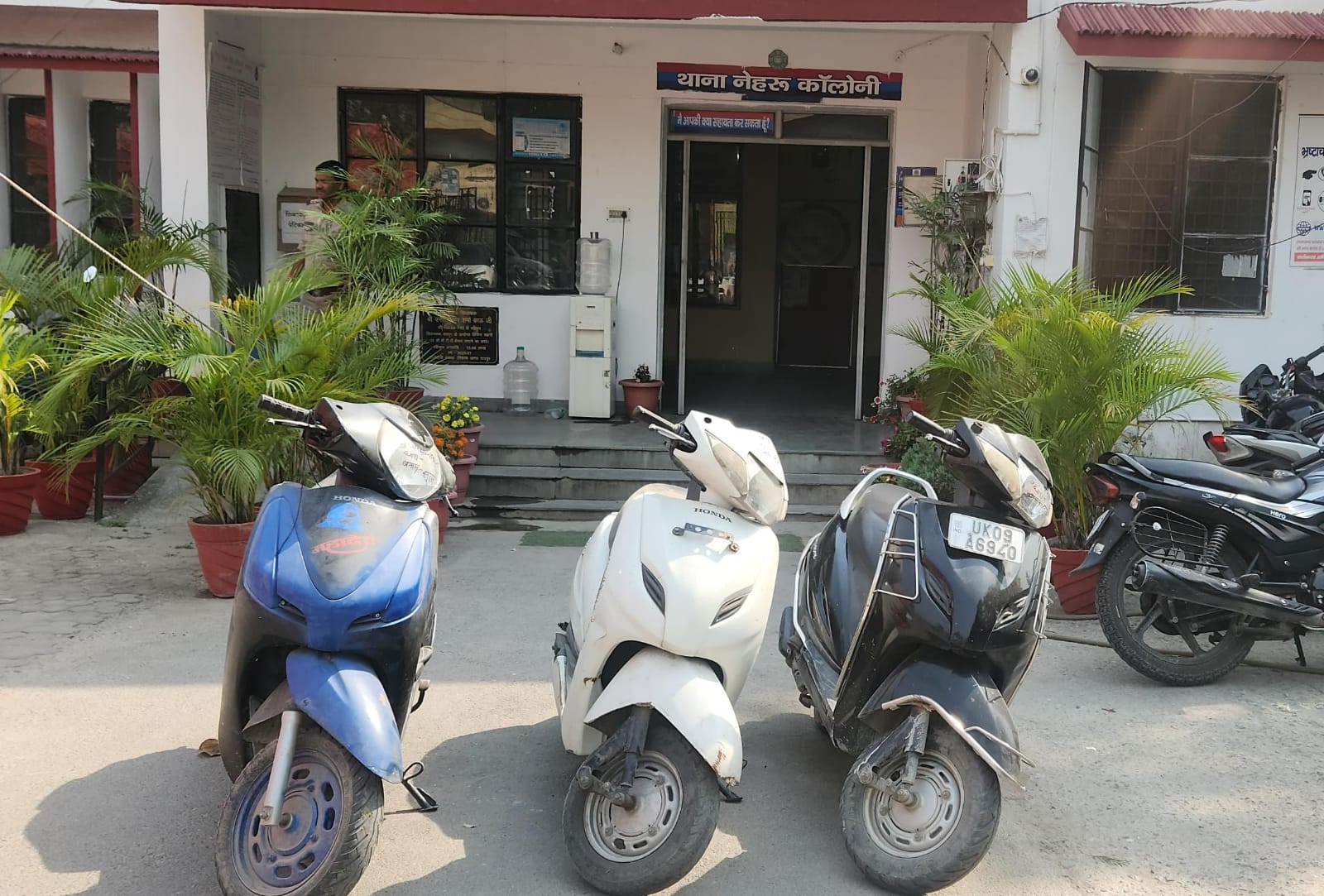पुलिस टीम द्वारा किये जा रहे प्रयासों के परिणाम स्वरूप दिनांक 27/04/25 को मुखबिर की सूचना पर घटना में शामिल अभियुक्त सूरज सिंह भंडारी को चोरी की स्कूटी न0 यू0के0-09-ए-6940 के साथ मोथरोवाला फ्लाई ओवर के नीचे से गिरफ्तार किया गया। अभियुक्त से सख्ती से पूछताछ करने पर अभियुक्त द्वारा बताया गया कि वो नशे का आदी है तथा अपने नशे की आवश्यकताओं की पूर्ति हेतु उसके द्वारा उक्त चोरी की घटना को अंजाम दिया गया था। अभियुक्त की निशानदेही पर फ्लाईओवर के पास से ही अभियुक्त द्वारा छिपा कर रखी गयी चोरी की दो अन्य स्कूटियां भी बरामद की गई, जिनकी नम्बर प्लेट अभियुक्त द्वारा तोडकर कहीं फेंक दी गई थी। स्कूटियों के चेसिस नम्बर से उनके रजिस्ट्रेशन नम्बर के सम्बन्ध में जानकारी एकत्रित की गई, जिनके संबंध में जनपद के अन्य थानो से जानकारी की जा रही है।