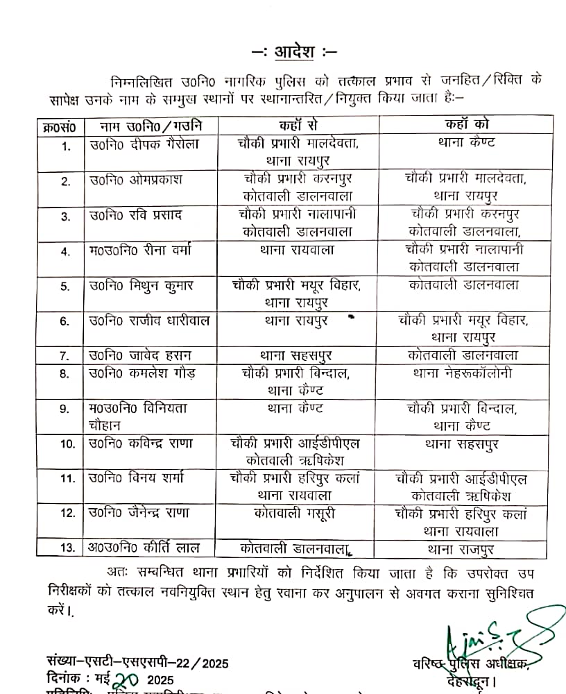 उत्तर प्रदेशउत्तराखंडदेहरादूनधार्मिकपर्यटनराजनीतिराष्ट्रीयशिक्षास्वास्थ्यहेल्थ एस एस पी देहरादून ने उपनिरीक्षकों के तबादले का आदेश किया जारी May 21, 2025 Jagmohan Singh Maurya Spread the loveदेहरादून।