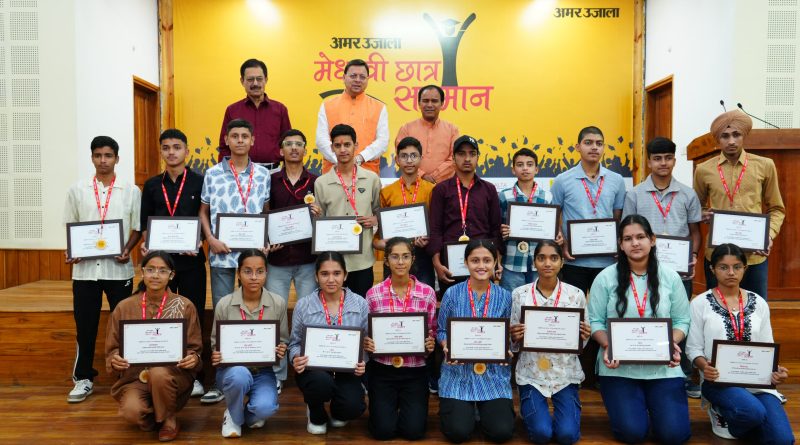 देहरादून। मुख्यमंत्री पुष्कर सिंह धामी ने मंगलवार को मुख्यमंत्री आवास स्थित मुख्य सेवक सदन में मेधावी छात्र सम्मान समारोह में उत्तराखण्ड माध्यमिक शिक्षा बोर्ड के हाईस्कूल और इण्टरमीडिएट के 75 मेधावी छात्र-छात्राओं को सम्मानित किया। अमर उजाला समाचार पत्र द्वारा आयोजित कार्यक्रम में मुख्यमंत्री ने कहा कि इस सम्मान समारोह के माध्यम से अमर उजाला प्रतिवर्ष हमारे राज्य के प्रतिभावान छात्रों को सम्मानित कर उनका उत्साहवर्धन कर रहा है।
