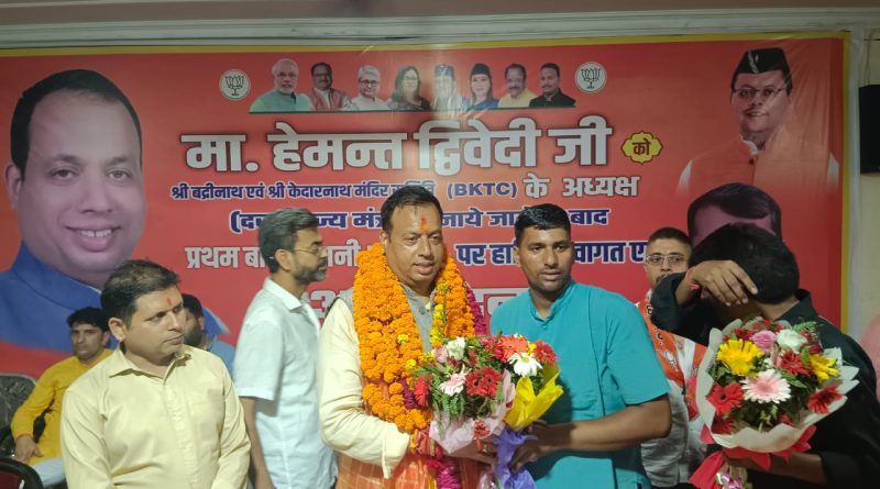 जसपुर, काशीपुर रामनगर, तथा भाजपा संभाग कार्यालय हल्द्वानी में आयोजित स्वागत समारोह में कार्यकर्ताओं तथा पार्टी पदाधिकारियों ने हेमंत द्विवेदी को बीकेटीसी का अध्यक्ष बनाये जाने के लिए प्रदेश के मुख्यमंत्री पुष्कर सिंह धामी, पर्यटन मंत्री सतपाल महाराज, प्रदेश अध्यक्ष महेन्द्र भट्ट का आभार जताया।