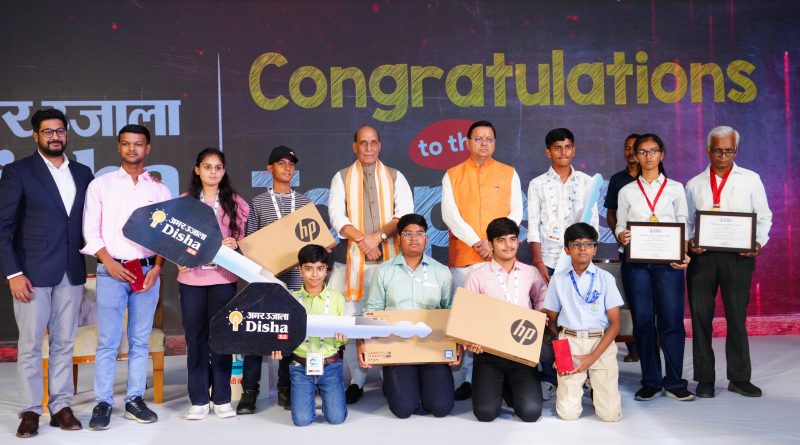 देहरादून। केंद्रीय रक्षा मंत्री राजनाथ सिंह की उपस्थिति में मुख्यमंत्री पुष्कर सिंह धामी ने मंगलवार को देहरादून स्थित एक होटल में आयोजित “अमर उजाला संवाद” कार्यक्रम में प्रतिभाग किया | इस अवसर पर केंद्रीय रक्षा मंत्री श्री राजनाथ सिंह तथा मुख्यमंत्री श्री पुष्कर सिंह धामी ने मेधावी छात्र छात्राओं को सम्मानित किया |