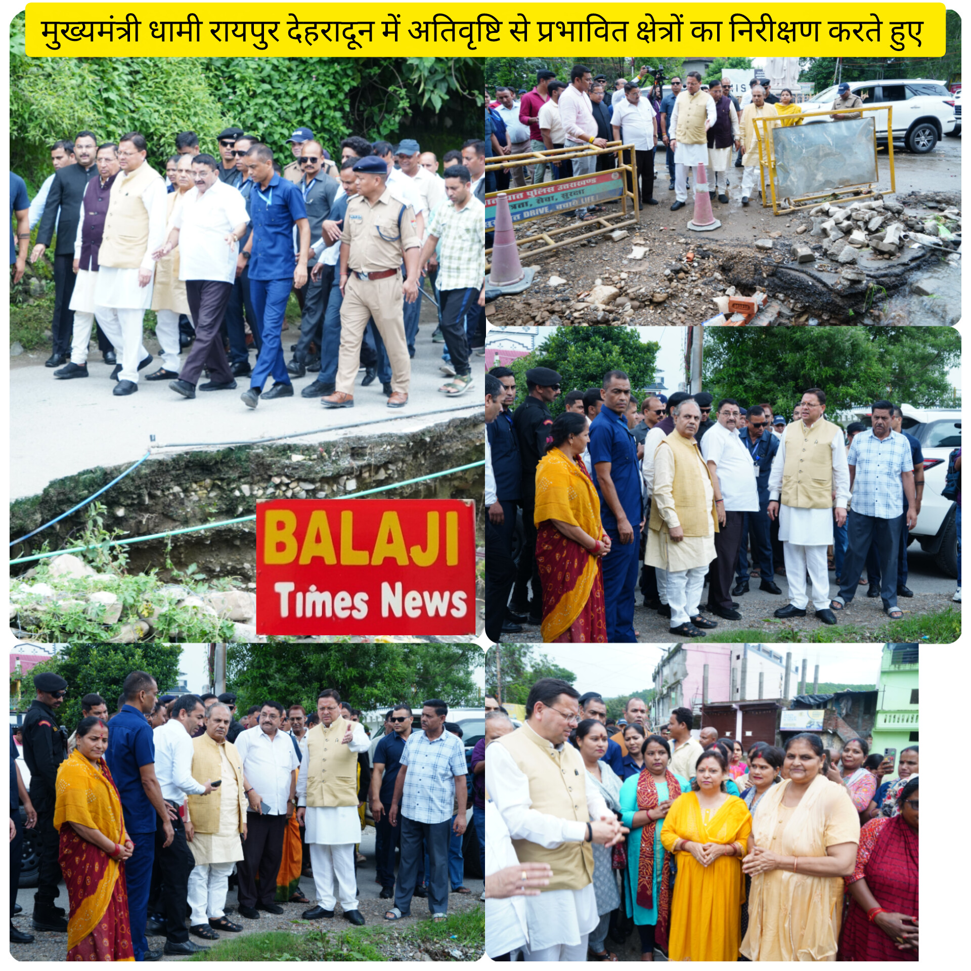 मुख्यमंत्री पुष्कर सिंह धामी ने विधान सभा रायपुर के अतिवृष्टि से प्रभावित क्षेत्रों का स्थलीय निरीक्षण किया