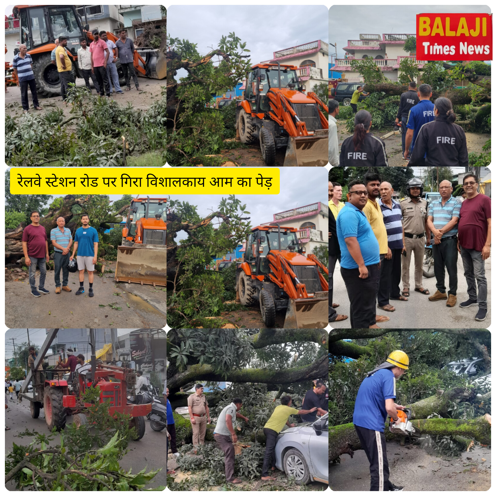सूचना पर फायर ब्रिगेड टीम वन विभाग विद्युत विभाग पुलिस प्रशासन की टीम द्वारा पेड़ को हटाने का कार्य किया जा रहा है जिससे रेलवे स्टेशन रोड फिर से चालू हो सके ।
