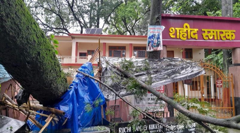 देहरादून कचहरी कोर्ट परिसर स्थित शहीद स्मारक के पास मौजूद विशालकाय पेड़ गिरा
