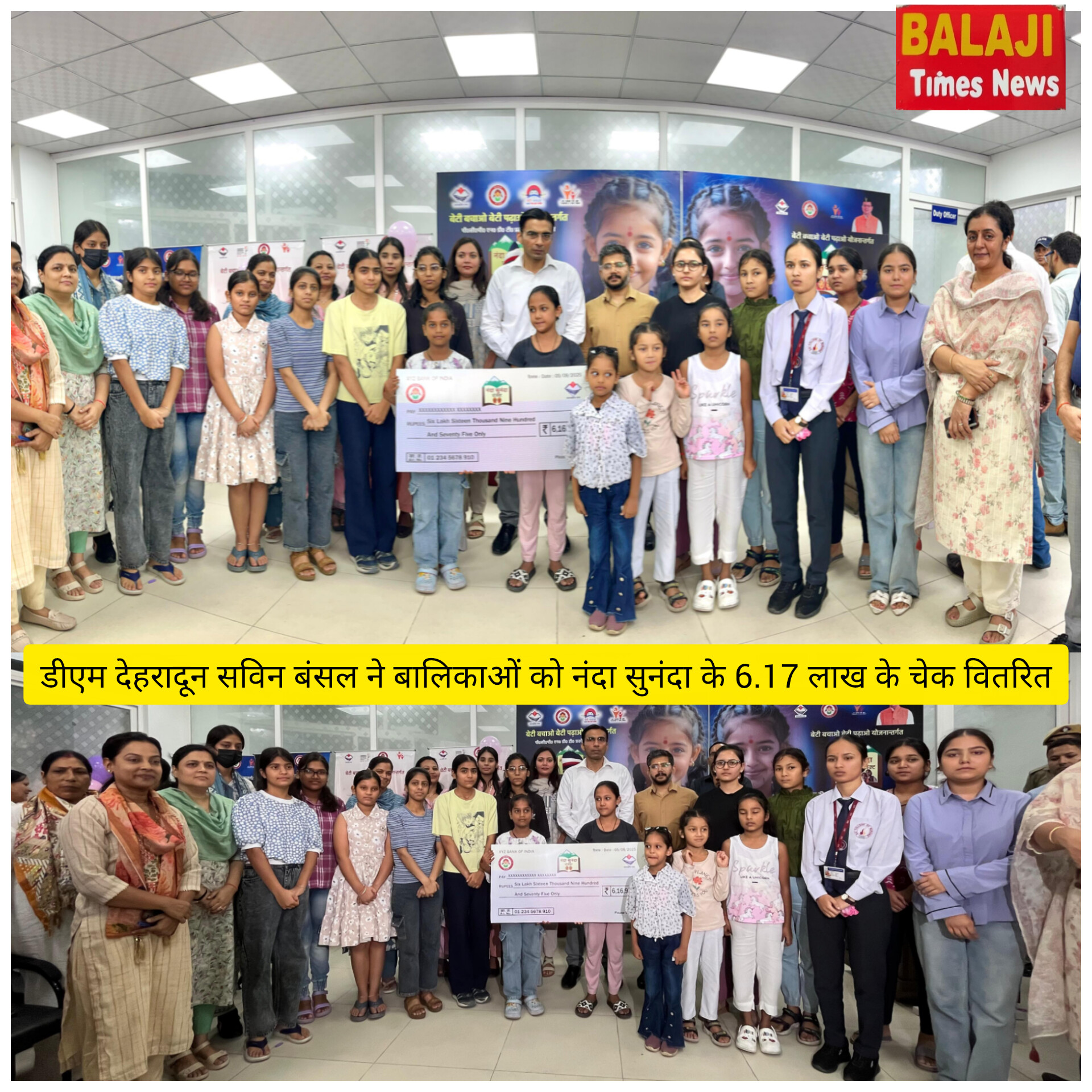 देहरादून 05 अगस्त, 2025 गरीब, अनाथ एवं असहाय बालिकाओं को स्नातक स्तर तक शिक्षित करने एवं कौशल शिक्षा प्रदान करने के लिए जिलाधिकारी सविन के महत्वाकांशी प्राजेक्ट ‘‘नंदा-सुनदा’’ अन्तर्गत आज 18 बालिकाओं की को 6.17 लाख धनराशि के चैक वितरित किए गए। प्रोजेक्ट नंदा-सुनंदा अन्तर्गत अब तक 19.24 लाख धनराशि से 56 बालिकाओं की शिक्षा पुनर्जीवित की गई है।
