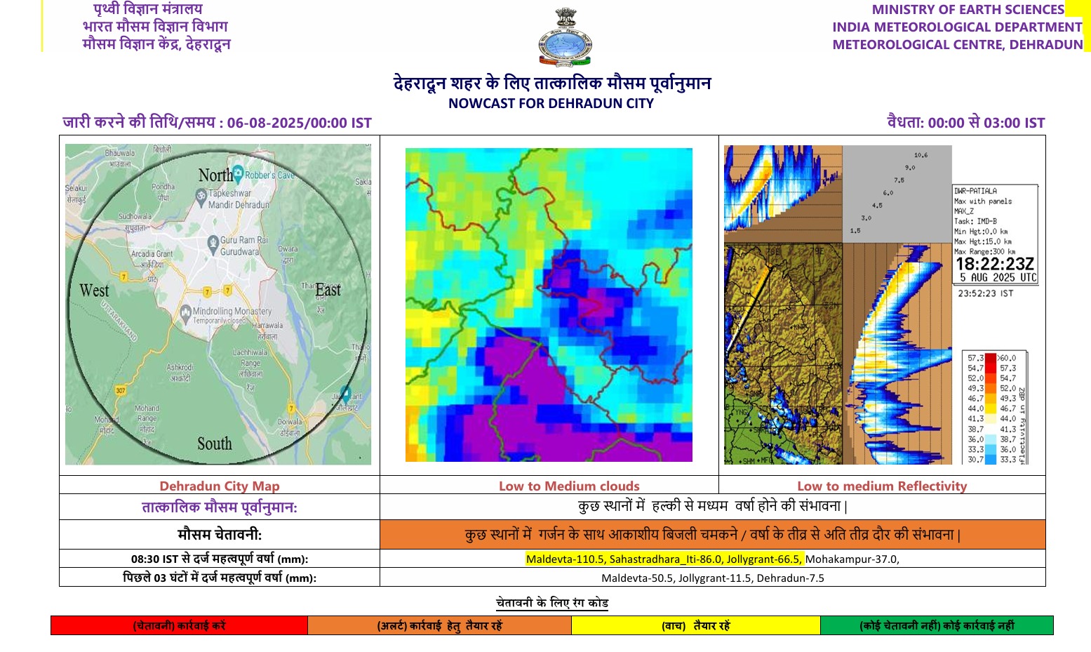राज्य के देहरादून , नैनीताल, चम्पावत, उधमसिंहनगर एवं बागेश्वर जनपद मे भारी बारिश कि चेतावनी