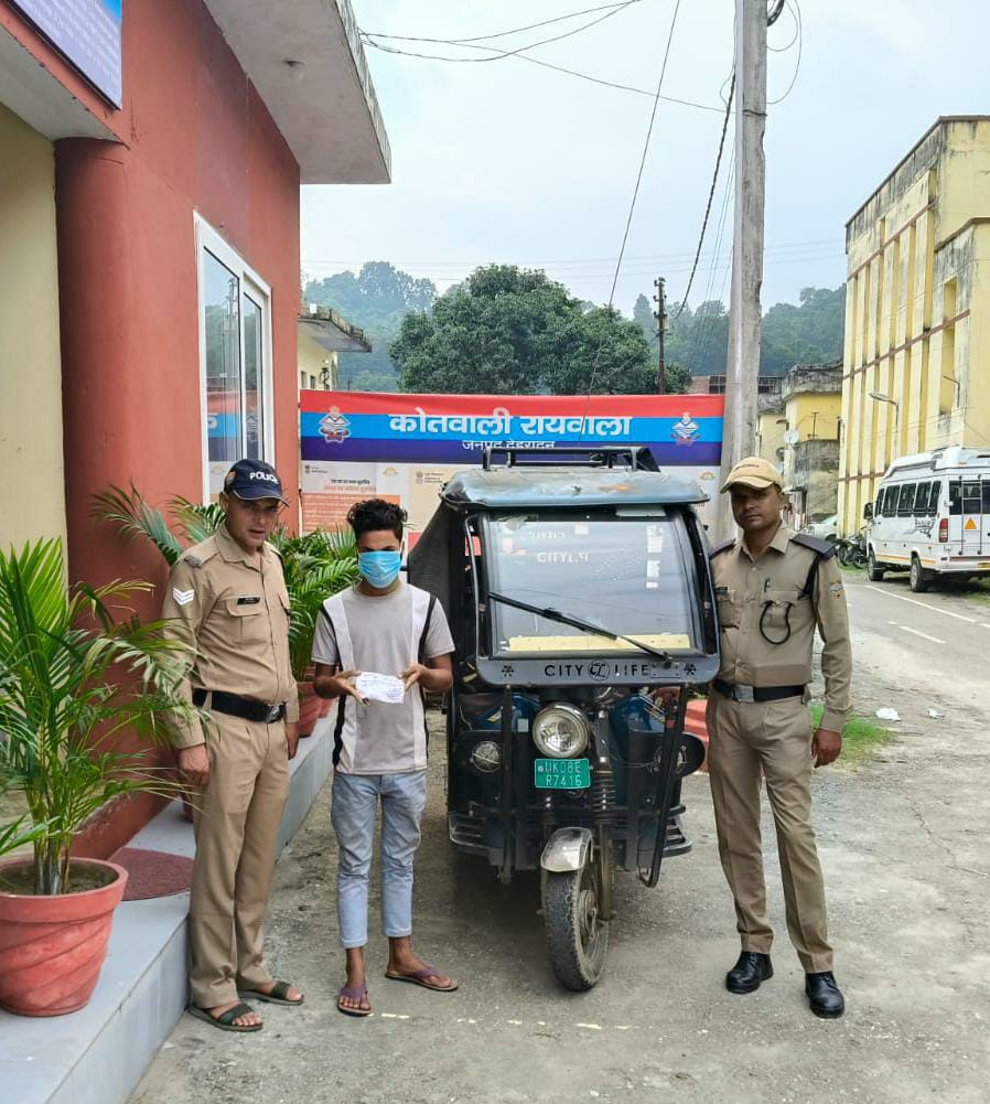 रायवाला पुलिस द्वारा गश्त/चैकिंग के दौरान मुखबिर की सूचना पर हरिपुरकला प्राइमरी स्कूल तिराहे के पास से 01 अभियुक्त को 8.22 ग्राम अवैध स्मैक के साथ गिरफ्तार किया गया। तस्करी में प्रयुक्त ई-रिक्शा संख्या: यू0के0-08-ईआर-7416 को सीज किया गया। अभियुक्त के विरुद्ध थाना रायवाला पर मु0अ0स0 152/25 धारा 8/21/60 एनडीपीएस का अभियोग पंजीकृत किया गया।
