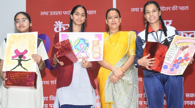 दून मेडिकल कॉलेज के सभागार में अमर उजाला द्वारा आयोजित ब्रेस्ट कैंसर जागरूकता शिविर में उत्तराखंड की महिला सशक्तिकरण एवं बाल विकास मंत्री रेखा आर्या ने बतौर मुख्य अतिथि हिस्सा लिया। गुरुवार को इस अवसर पर ब्रेस्ट कैंसर विषय पर आयोजित पेंटिंग और स्लोगन प्रतियोगिता की विजेताओं को सम्मानित किया गया।