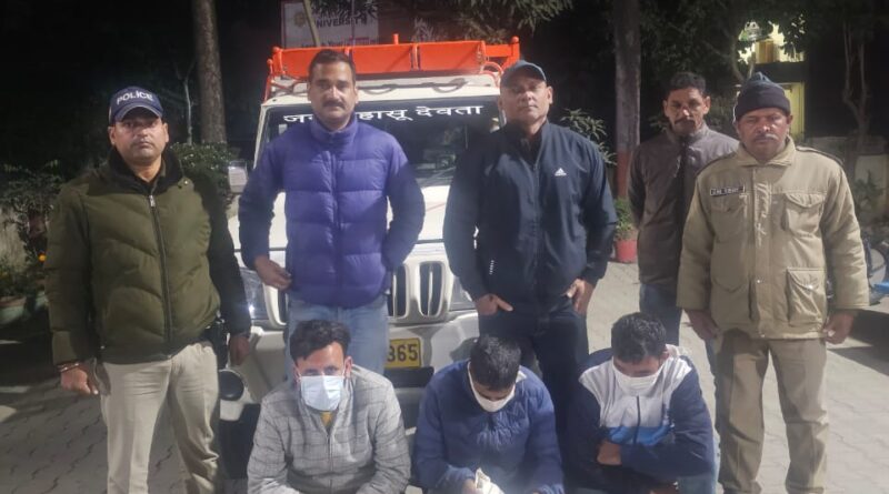 मुख्यमंत्री उत्तराखंड के ड्रग्स फ्री देवभूमि मिशन 2025 अभियान के तहत वरिष्ठ पुलिस अधीक्षक एसटीएफ श्री नवनीत सिंह भुल्लर* द्वारा ड्रग्स के खिलाफ कार्यवाही करने के लिये एंटी नारकोटिक्स टास्क फोर्स (A.N.T.F.) को उत्तराखण्ड के समस्त जनपदों में कड़ी निगरानी रखते हुये कार्यवाही करने हेतु निर्देशित किया गया है। जिसके अनुपालन में उत्तराखण्ड एसटीएफ की एण्टी नारकोटिक्स टास्क फोर्स द्वारा थाना विकासनगर देहरादून पुलिस के साथ संयुक्त अभियान में दिनांक 06.11.2025 की सुबह को थाना विकासनगर देहरादून क्षेत्र से 3 अभियुक्तों 1-दिनेश पुत्र भोपालू नि0 ग्राम जिसऊ घराना तहसील कालसी जनपद देहरादून उम्र 26 वर्ष, 2- कुन्दन चौहान पुत्र अमर सिंह नि0 ग्राम सूर्यो तहसील कालसी जनपद देहरादून, 3- पंकज पुत्र सरदार सिंह नि0 ग्राम सूर्यो तहसील कालसी जनपद देहरादून उम्र 25 वर्ष को 1.505 किग्रा0 चरस परिवहन करते हुए मय वाहन के गिरफ्तार किया गया । अभियुक्तों द्वारा पूछने पर बताया गया कि वह यह चरस पहाड़ी क्षेत्र से सस्ते दामों में लाकर तथा विकास नगर क्षेत्र में ऊंचे दामों में बेचकर अधिक मुनाफा कमाते हैं |