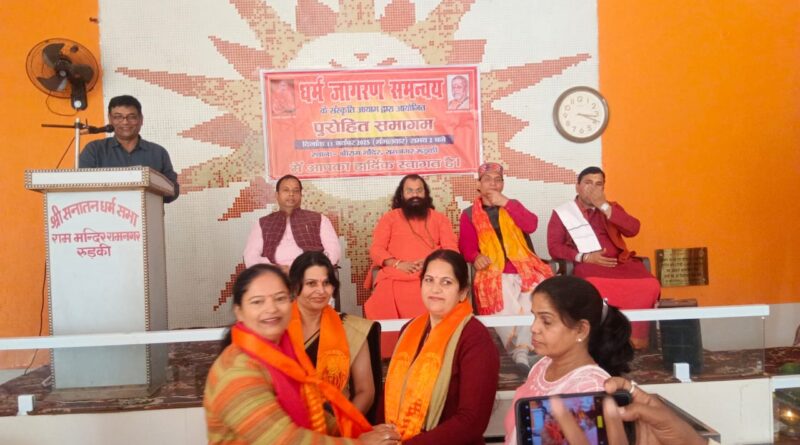 हरिद्वार/ देहरादून: 11 नवंबर 2025 राम मंदिर रुड़की में धर्मजागरण समन्वय के संस्कृति आयाम द्वारा आयोजित पुरोहित समागम कार्यक्रम आयोजित हुआ जिसमें श्री बदरीनाथ केदारनाथ मंदिर समिति ( बीकेटीसी) अध्यक्ष हेमंत द्विवेदी बतौर मुख्य अतिथि शामिल हुए समागम का शुभारंभ दीप प्रज्वलन, मां सरस्वती के चित्र पर माल्यार्पण तथा अतिथियों के सम्मान के साथ शुरू हुआ।