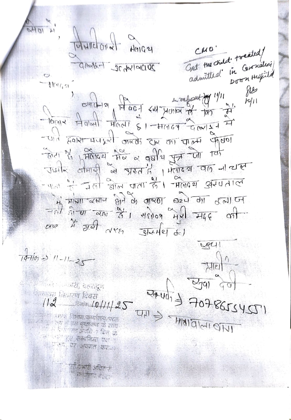 डीएम के निर्देश पर दून चिकित्सालय के बाल रोग विशेषज्ञों ने जांच उपरांत एम्स में उपचार करने की दी सलाह