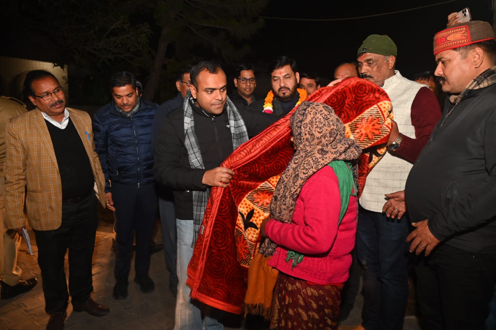 जनपद में बढ़ती शीत लहर के दृष्टिगत गरीब एवं असहाय व्यक्तियों को शीत लहर के प्रकोप से बचाने के लिए जिलाधिकारी स्वयं धरातल पर पहुंचकर संचालित हो रहे रेन बसेरों एवं विभिन्न स्थानों पर जलाये जा रहे अलाव का खुद जायजा ले रहे है तथा इसके साथ ही गरीब व्यक्तियों को स्वयं कंबल वितरित कर रहे है। जिलाधिकारी मयूर दीक्षित एवं शिवालिक नगर पालिका अध्यक्ष राजीव शर्मा द्वारा आज शिवालिक नगर क्षेत्रांतर्गत शिव मंदिर,शिवालिक नगर चौक,सीआईएसएफ के पास,टिहरी विस्थापित कॉलोनी,हनुमान मंदिर सेक्टर 4 ,सहित आदि क्षेत्रों में पहुंच कर गरीब निराश्रित व्यक्तियों को कंबल वितरित किए गए साथ ही क्षेत्र में जलाये जा रहे अलाव का भी लिया जायजा।