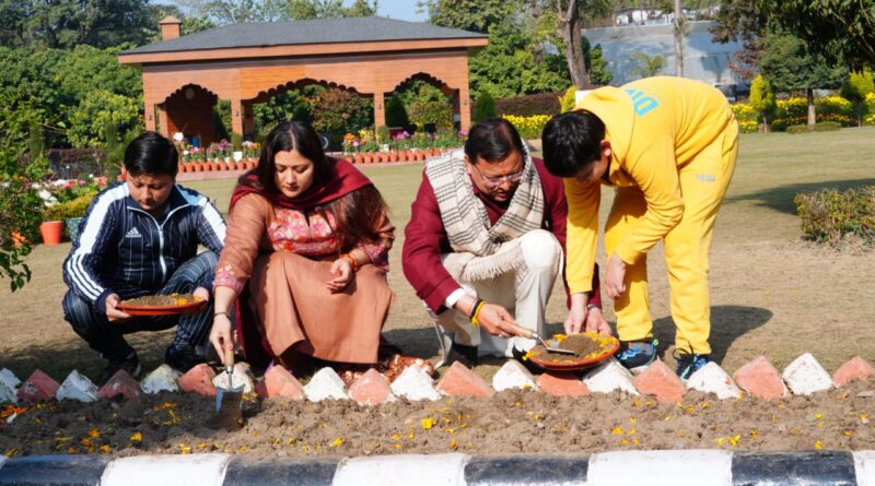 मुख्यमंत्री पुष्कर सिंह धामी ने ने सपरिवार ट्यूलिप के बल्ब रोपे