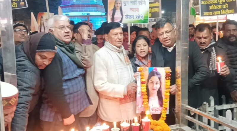पूर्व कैबिनेट मंत्री हीरा सिंह बिष्ट के नेतृत्व में अंकिता भंडारी को न्याय दिलाने को लेकर कैंडल मार्च निकाला
