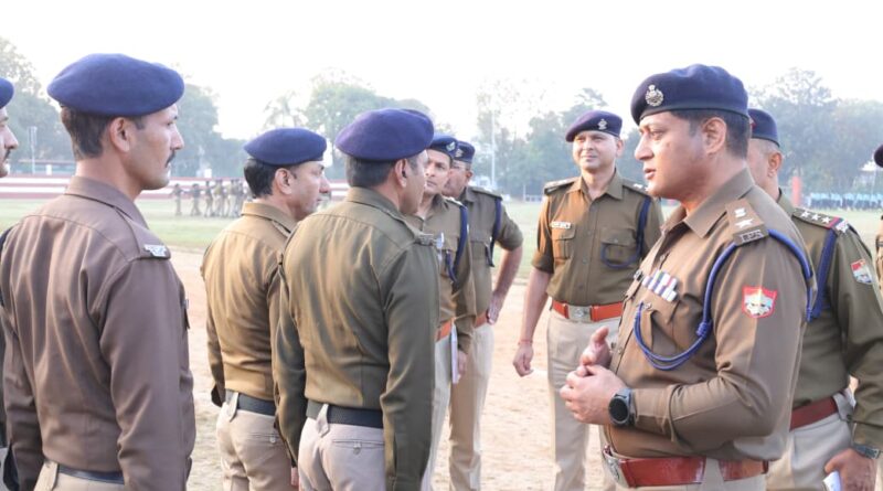 परेड का निरीक्षण कर उपस्थित अधिकारियों को कर्मचारियों के हितार्थ दिये आवश्यक दिशा-निर्देश