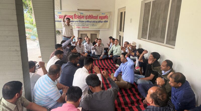 देहरादून । उत्तराखण्ड डिप्लोमा इंजीनियर्स महासंघ की लंबे समय से शासन स्तर पर लंबित 27 सूत्रीय समस्याओं के समाधान न होने पर प्रथम चरण एवं द्वितीय चरण के आंदोलन के पश्चात दिनांक 23.03.2026 को महासंघ के सदस्यों द्वारा प्रदेश व्यापी अनिश्चितकालीन हड़ताल प्रारम्भ कर दी गयी है। हड़ताल, 16वें दिवस भी प्रबल संख्या बल एवं प्रभावशाली नारो के साथ शाखा डाकपत्थर के सदस्यों द्वारा निरीक्षण भवन डाकपत्थर परिसर के सम्मुख हड़ताल कार्यकम में प्रतिभाग किया गया। हड़ताल कार्यक्रम की अध्यक्षता सिंचाई विभाग के महासंघ के डाकपत्थर शाखा अध्यक्ष इं० संदीप राठौर एवं मंच संचालन इं० पुष्कर सिंह, उत्तराखण्ड जल संस्थान द्वारा किया गया। आज दिनांक-07.04.2026 को अधिशासी अभियन्ता, सिंचाई खण्ड, विकासनगर इं० पी० एल० नौटियाल सम्मिलित हुये।