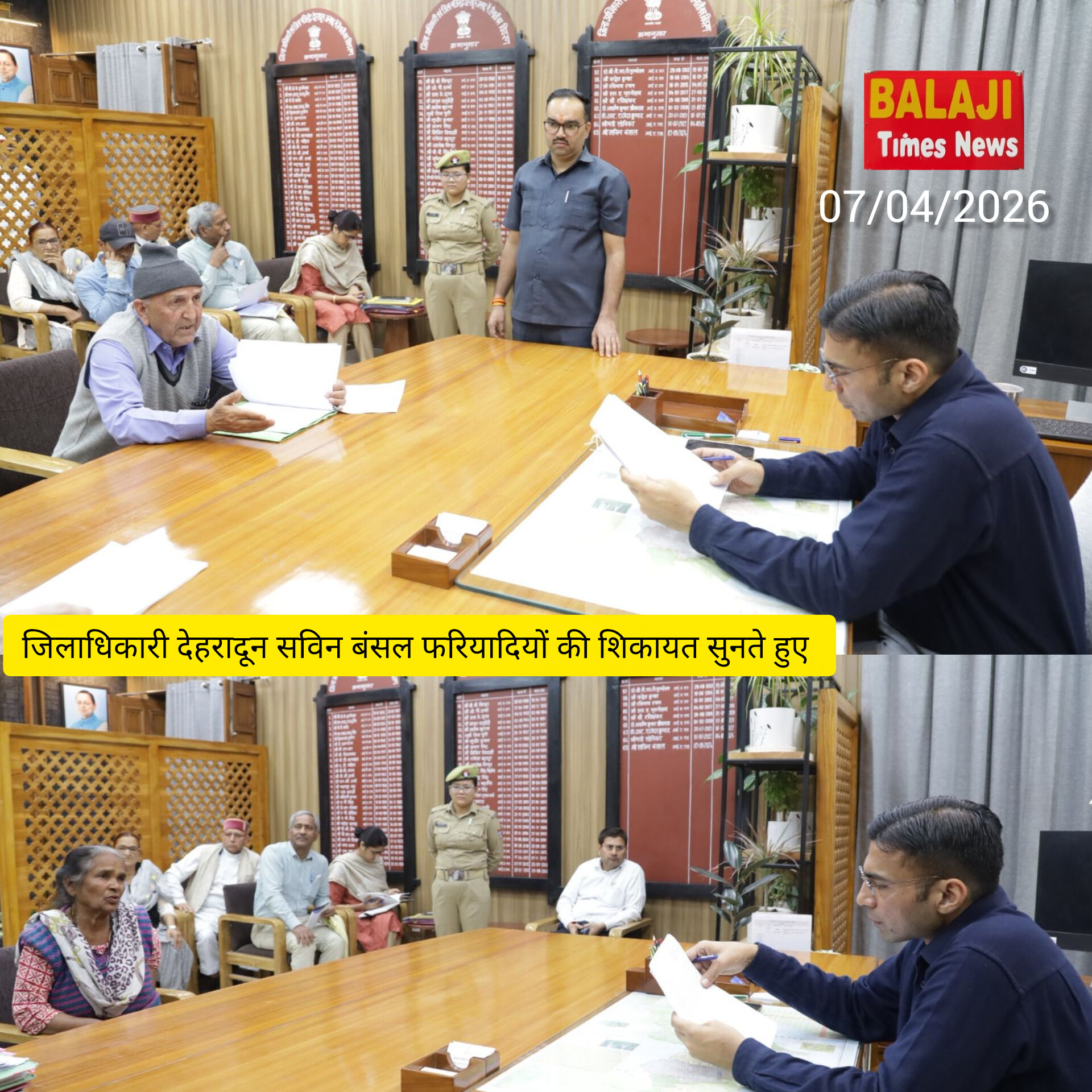 देहरादून, दिनांक 07 अप्रैल 2026 जिलाधिकारी कार्यालय कक्ष में आज फिर जला जनता दर्शन 50 से अधिक शिकायत प्राप्त जिलाधिकारी सविन बंसल प्रत्येक सोमवार को आयोजित होने वाले जनता दर्शन कार्यक्रम के दौरान शासन में आयोजित बैठक में प्रतिभाग करने के फलस्वरूप प्राप्त 212 शिकायतों में से लगभग 120 फरियादियों की शिकायत सुन पाए थे। जिलाधिकारी सविन बसंल ने आज अपने कार्यालय कक्ष में जनमानस की शिकायतें सुनी। जिलाधिकारी प्रत्येक दिन अपने कार्यालय कक्ष में आने वाले फरियादियों की शिकायतें सुनते है तथा सम्बन्धित विभागों से उनका समयबद्ध निस्तारण भी करवाते है। डीएम स्वयं शिकायतों की मॉनिटिरिंग करते है। डीएम अपने कार्यालय कक्ष में प्रतिदिन अपने कार्यों के साथ ही जनमानस की शिकायतें भी सुनते है प्रतिदिन फरियादियों की संख्या 40 से अधिक ही होती है।