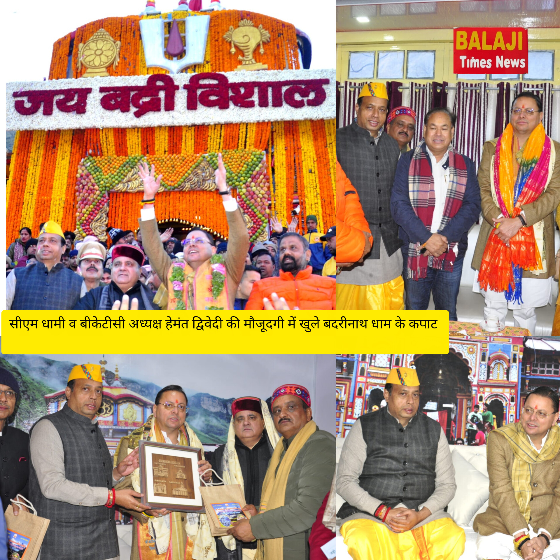 श्री बदरीनाथ धाम: 23 अप्रैल 2026 श्री बदरीनाथ धाम के कपाट खुलने के शुभ अवसर पर मुख्यमंत्री पुष्कर सिंह धामी की मौजूदगी में भव्य धार्मिक कार्यक्रमों का आयोजन किया गया। इस दौरान श्री बदरीनाथ केदारनाथ मंदिर समिति (बीकेटीसी) के अध्यक्ष हेमंत द्विवेदी ने यात्रा व्यवस्थाओं का स्थलीय निरीक्षण कर व्यवस्थाओं का जायजा लिया।