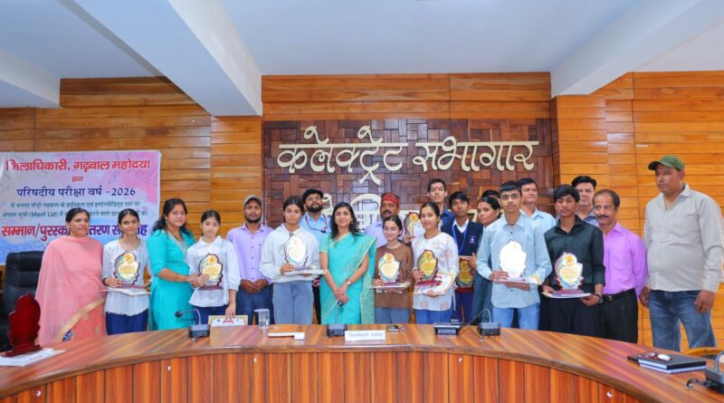 जनपद पौड़ी । उत्तराखंड परिषदीय परीक्षा वर्ष 2026 में हाईस्कूल एवं इंटरमीडिएट की श्रेष्ठता सूची में स्थान प्राप्त करने वाले जनपद के मेधावी छात्र-छात्राओं के सम्मान में कलेक्ट्रेट सभागार में एक गरिमामय सम्मान समारोह आयोजित किया गया। उत्तराखंड बोर्ड परीक्षा में जनपद पौड़ी गढ़वाल के कुल 21 विद्यार्थियों (हाईस्कूल के 14 एवं इंटरमीडिएट के 7 छात्र-छात्राओं) ने उत्कृष्ट प्रदर्शन कर जिले का नाम गौरवान्वित किया।